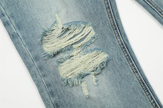 American High Street Hole & Patch Trendy Retro Straight Jeans