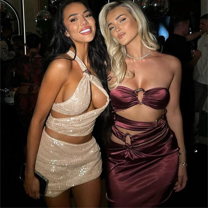 Fashion Sequin Reflective Women Hollow Out Suit
