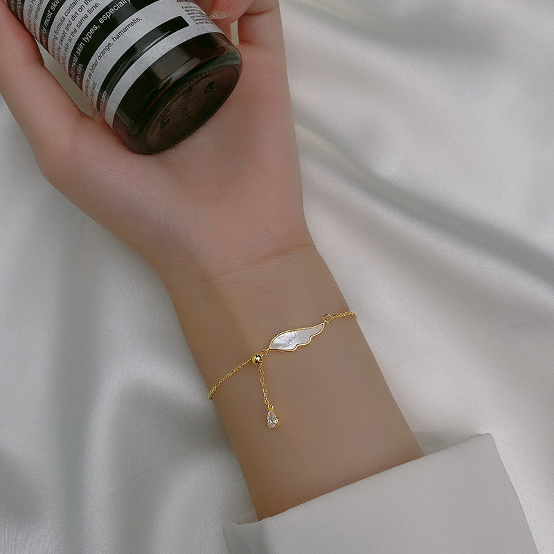Modian Light Beads White Shell Wings Tassel Water Drop Shape 925 Sterling Silver Link Chain Bracelet for Women Girl Fine Jewelry