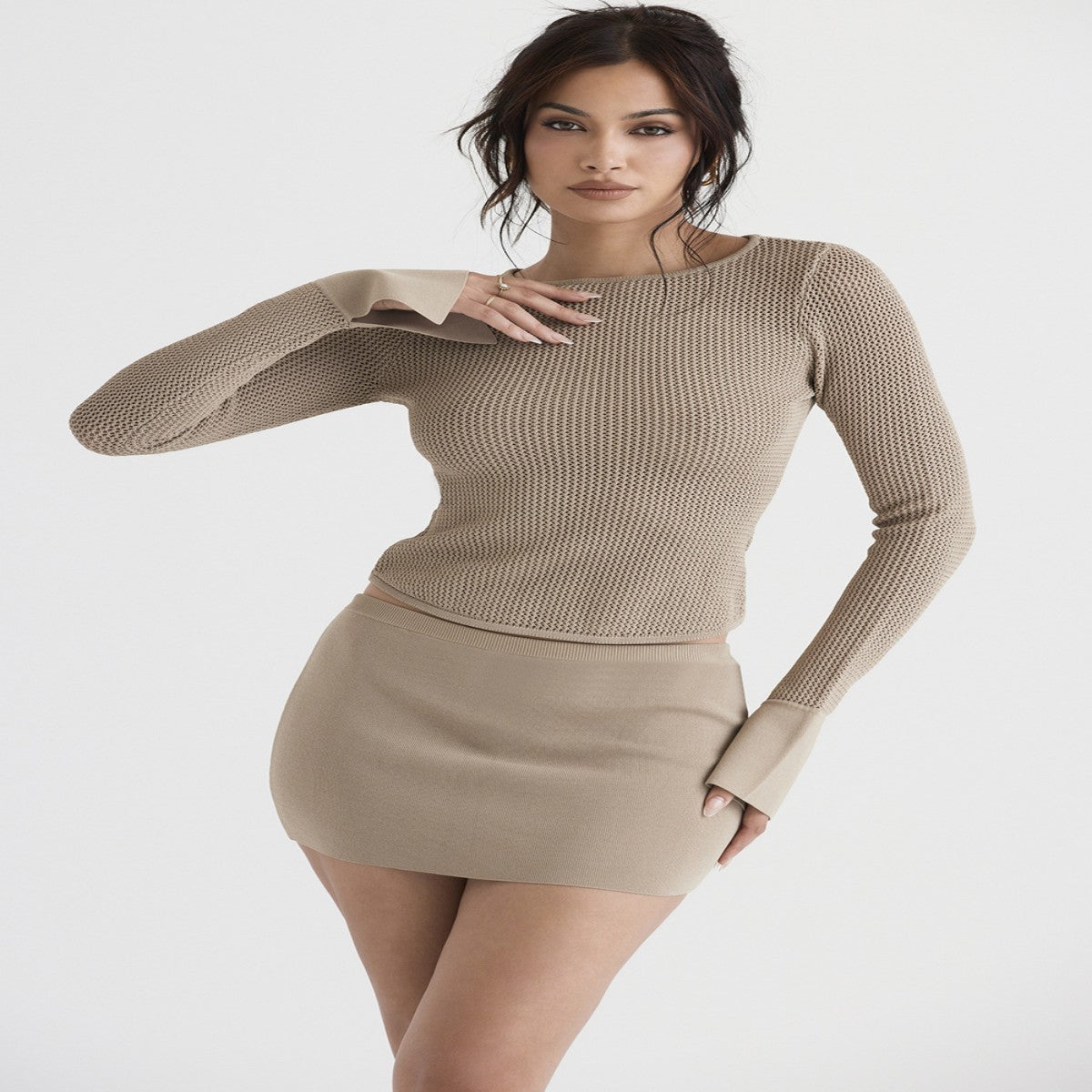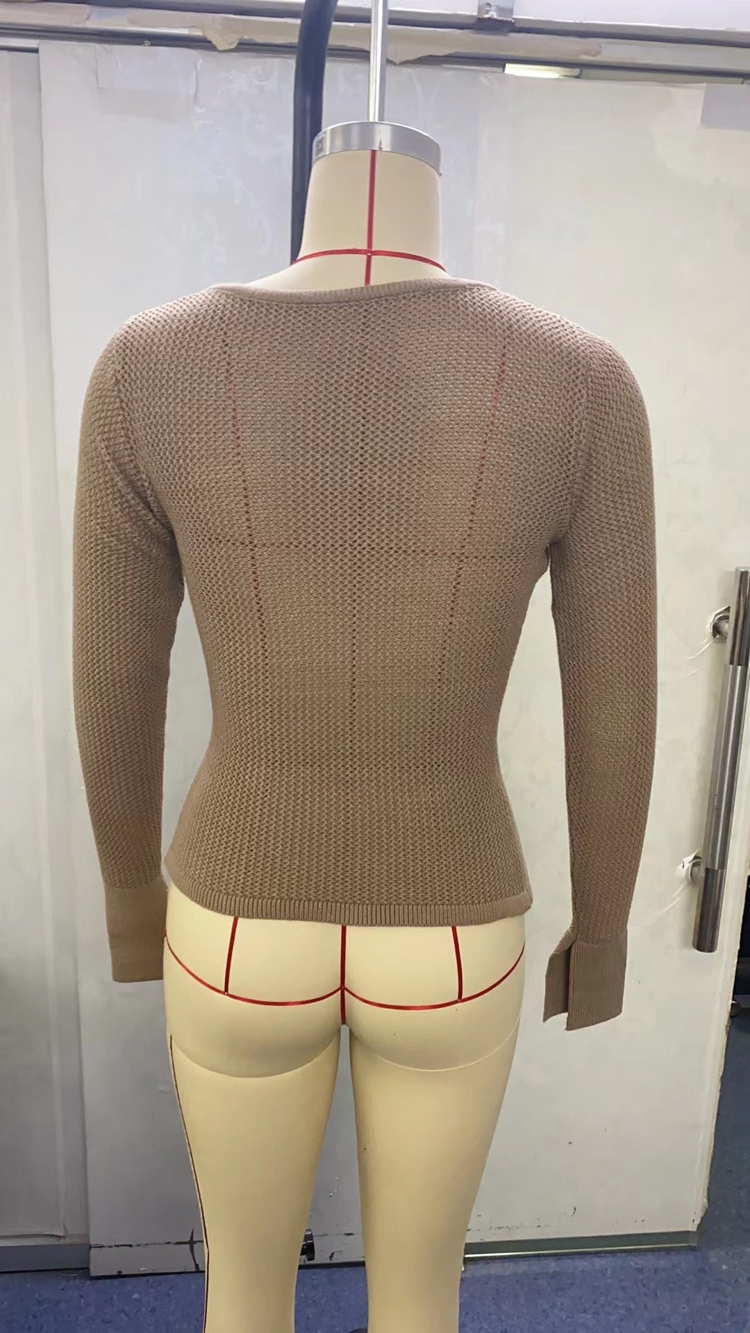Solid Color Knitted Top Women's Long-sleeved Bottoming Sweater