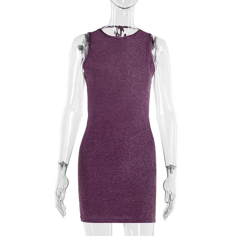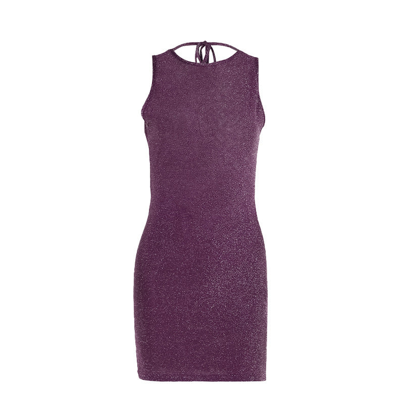 Summer Slim-fit Shiny Fabric Backless Dress